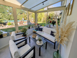 Dès que vous franchissez le seuil, vous êtes enveloppé par une atmosphère chaleureuse et accueillante. Le séjour, équipé d'une cheminée avec insert est baigné de lumière naturelle grâce à sa triple exposition, donnant directement sur une véranda isolée et chauffée avec vue sur le jardin paysagé. La cuisine américaine, entièrement aménagée et équipée, est un rêve pour les amateurs de cuisine. Les 5 chambres spacieuses, dont une suite parentale au rez-de-chaussée avec salle d'eau, offrent intimité et sérénité. A l'étage, une salle d'eau avec WC ainsi qu'un espace bureau complètent l'espace nuit, Côté pratique, la maison est équipée d'une spacieuse buanderie avec accès à une terrasse, d'un garage attenant avec un grenier au dessus offrant un potentiel supplémentaire.