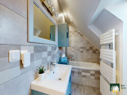 -Un vaste séjour lumineux avec poêle a bois -Une cuisine semi-ouverte aménagée et équipée -Quatre chambres spacieuses dont une au rez-de-chaussée avec salle d'eau privative -Salle de bains et deux WC indépendants -Une buanderie