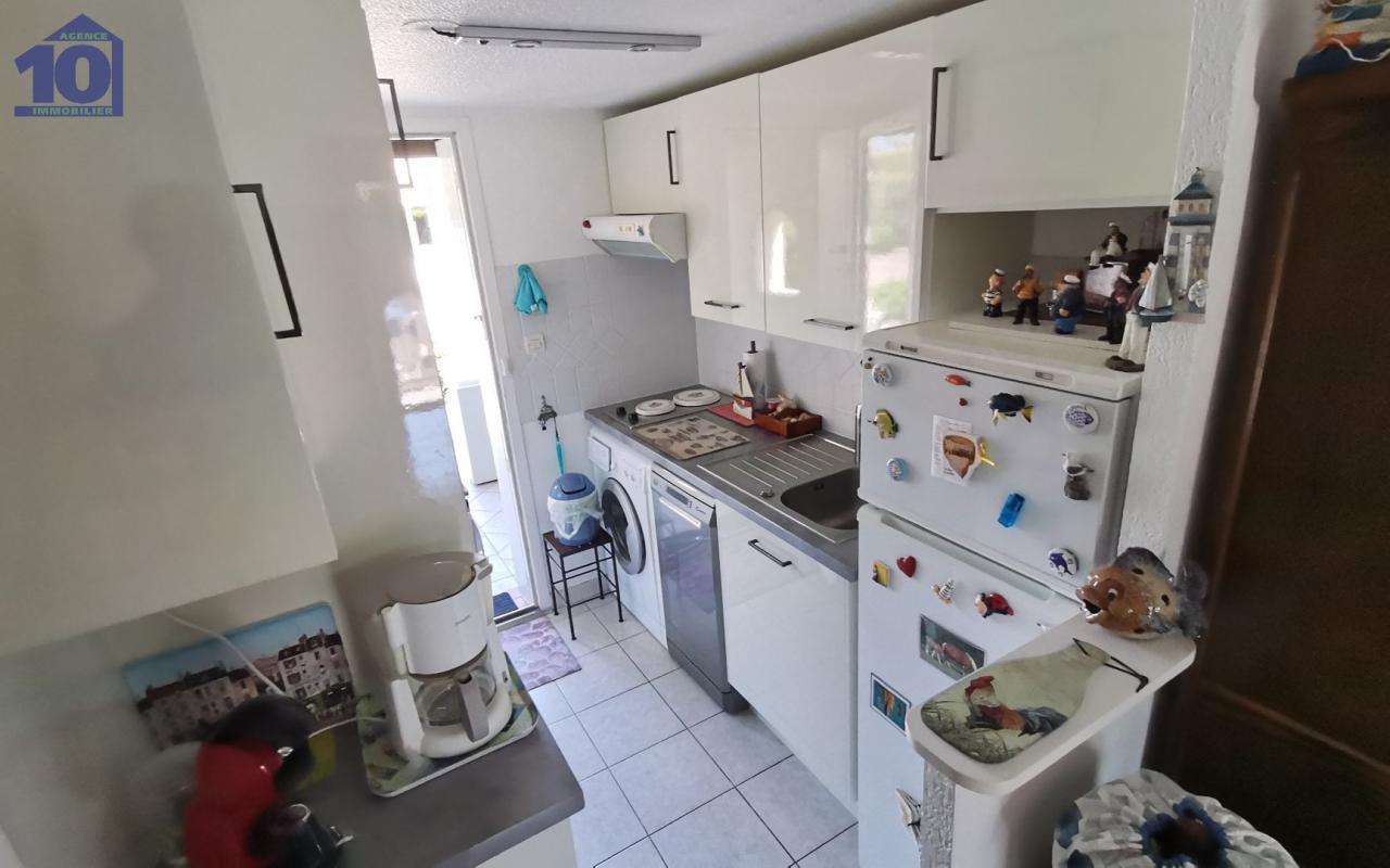 À vendre à Valras-Plage, secteur du port, maison traversante de 75 m² habitables, située à 15 minutes à pied du centre-ville et de la plage. Au rez-de-chaussée : salon-séjour traversant avec cuisine équipée, une chambre, salle d'eau et WC avec fenêtre. À l'étage : appartement de type T2 comprenant une chambre, un coin mezzanine permettant deux couchages supplémentaires, une deuxième salle d'eau et un deuxième WC. Quelques travaux de rénovation sont à prévoir sur l'étage. À l'extérieur : terrasse carrelée à l'avant et terrasse avec jardin ombragé à l'arrière. Contact : agence@diximmobilier.com - 04 67 39 42 06maison