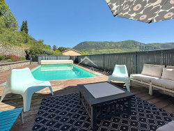Située dans un environnement privilégié, au coeur d'un écrin de verdure paisible et dominant, cette maison type 4 de 97 m2 avec superbe cachet récemment rénovée, offre un cadre de vie exceptionnel, alliant calme, confort et luminosité, quartier Lycée Jean Vigo à Millau. Dès l'entrée, vous serez séduits par une pièce de vie de 34 m2 baignée de lumière grâce à ses nombreuses ouvertures et son exposition sud-sud-ouest. La cuisine équipée, semi-séparée, de 11,80 m2, s'ouvre harmonieusement sur le séjour, créant un espace convivial et chaleureux. À l'étage, le coin nuit se compose de trois chambres de 9,80 m2, 10,30 m2 et 11,90 m2, cette dernière bénéficie d'un accès direct à un dressing spacieux de 8,20 m2, lui-même ouvrant sur une terrasse, avec vue dégagée sur la propriété et la nature environnante. Une salle de bain ainsi qu'un WC complètent cet étage. Les extérieurs et son terrain de 1514 m2, parfaitement entretenu, invite à la détente : grande terrasse sans vis-à-vis, magnifique piscine chauffée avec abri de 10,80 m2, coin potager, et vues imprenables sur les causses environnante. Un système d'arrosage automatique facilite l'entretien du jardin. La maison dispose également d'une cave et d'un système de chauffage performant, combinant un poêle à granulés dans les pièces de vie et une unité de pompe à chaleur réversible dans chaque chambre. Le petit plus : une taxe foncière contenue à 1255 eu « seulement ». Un bien rare avec gros cachet, pensé pour le confort quotidien comme pour les moments de plaisir en famille ou entre amis, dans un cadre naturel exceptionnel. Cette annonce vous est proposée par GUIDICE Romain - EIRL - NoRSAC: 841730393, Enregistré à Greffe du tribunal de commerce de Rodez - Annonce rédigée et publiée par un Agent Mandataire -