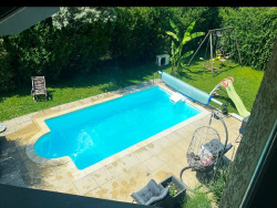 Prestations supplémentaires de la maison: - Piscine 6.50 m / 3.50 m avec pompe à chaleur, exposée plein sud, traitée au chlore; bloc de filtration changé en 2022, - Store extérieur électrique, - Chauffage au sol au RDC et par radiateurs à l'étage, - Volets électriques et double vitrage, - Toiture en tuiles, - Chauffage et eau chaude par chaudière à condensation (changée en 2021) au gaz de ville, - Exposition: plein Sud et bénéficiant du soleil toute la journée, - Terrasse carrelée de 70 m2, - Terrain clos, plat et arboré (olivier, bananier...) de 854 m2 avec son coin potager, - Portail électrique, alarme...