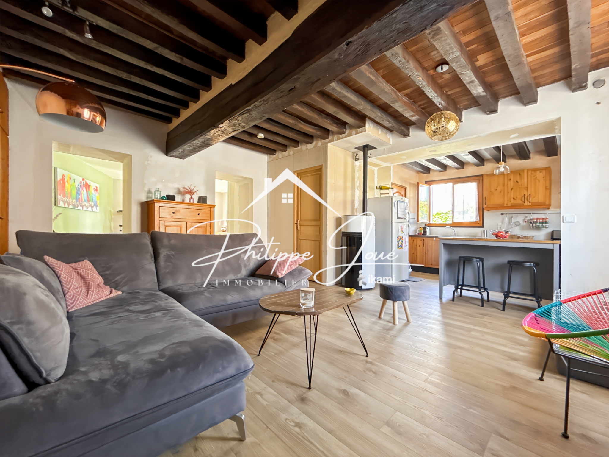 À l'intérieur, on découvre une entrée accueillante menant à un salon séjour chaleureux agrémenté d'une cheminée, une cuisine fonctionnelle ouvrant sur une belle terrasse, une chambre confortable de 17m² , une salle d'eau et un WC séparé. Grenier aménageable sur la totalité. Toiture refaite, double vitrage, cave.