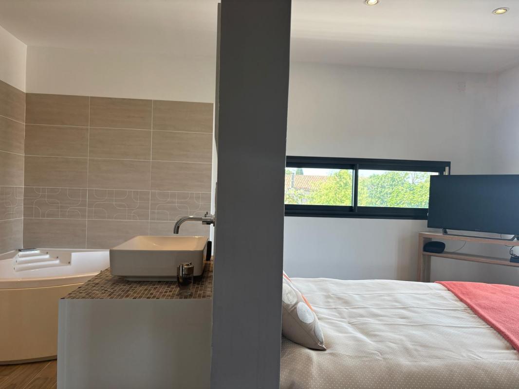 Cette propriété de 225m2 se niche sur un terrain de 4000m2, avec une piscine et un jardin arboré sans vis-à-vis, baignés de lumière toute la journée grâce à son orientation plein sud.