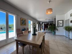 Cette propriété de 225m2 se niche sur un terrain de 4000m2, avec une piscine et un jardin arboré sans vis-à-vis, baignés de lumière toute la journée grâce à son orientation plein sud.