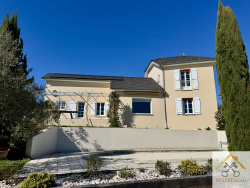 Maison contemporaine avec vue dégagée, piscine et beau terrain Située dans un environnement calme, cette agréable maison contemporaine construite en 2008 offre environ 148 m2 habitables, sur un terrain clos d'environ 1 200 m2, avec une belle vue dégagée plein Sud. Dès l'entrée, vous serez séduit par les volumes généreux et la luminosité de la pièce de vie. Le rez-de-chaussée se compose d'une spacieuse cuisine ouverte avec salle à manger (36 m2), équipée et agrémentée d'un four à bois de qualité, ainsi qu'un salon confortable de 36 m2. Une chambre de plain-pied, une salle de bain complète (douche, baignoire, meuble vasque), un WC indépendant et une buanderie viennent compléter ce niveau. À l'étage, un dégagement dessert deux chambres, une salle d'eau ainsi qu'un WC indépendant. À l'extérieur, vous profiterez d'un terrain entièrement clôturé, ainsi que d'une piscine enterrée au sel de 8 x 4 m. Un garage attenant de 27 m2 avec porte sectionnelle électrique et espace de rangement en combles complète ce bien. Taxe foncière : environ 1 840 EUR / an Une maison idéale pour une famille à la recherche de confort, de calme et d'un cadre de vie agréable.