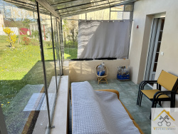 Maison contemporaine avec vue dégagée, piscine et beau terrain Située dans un environnement calme, cette agréable maison contemporaine construite en 2008 offre environ 148 m2 habitables, sur un terrain clos d'environ 1 200 m2, avec une belle vue dégagée plein Sud. Dès l'entrée, vous serez séduit par les volumes généreux et la luminosité de la pièce de vie. Le rez-de-chaussée se compose d'une spacieuse cuisine ouverte avec salle à manger (36 m2), équipée et agrémentée d'un four à bois de qualité, ainsi qu'un salon confortable de 36 m2. Une chambre de plain-pied, une salle de bain complète (douche, baignoire, meuble vasque), un WC indépendant et une buanderie viennent compléter ce niveau. À l'étage, un dégagement dessert deux chambres, une salle d'eau ainsi qu'un WC indépendant. À l'extérieur, vous profiterez d'un terrain entièrement clôturé, ainsi que d'une piscine enterrée au sel de 8 x 4 m. Un garage attenant de 27 m2 avec porte sectionnelle électrique et espace de rangement en combles complète ce bien. Taxe foncière : environ 1 840 EUR / an Une maison idéale pour une famille à la recherche de confort, de calme et d'un cadre de vie agréable.
