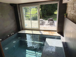 Rez de chaussée : - vaste entrée desservant 1 pièce détente avec accueil et beau Spa à débordement donnant sur une belle terrasse plein sud , 1 gd chambre , buanderie , salle de bain , cave .