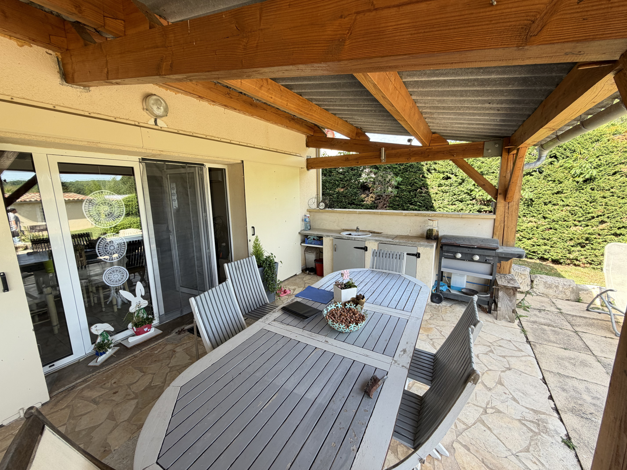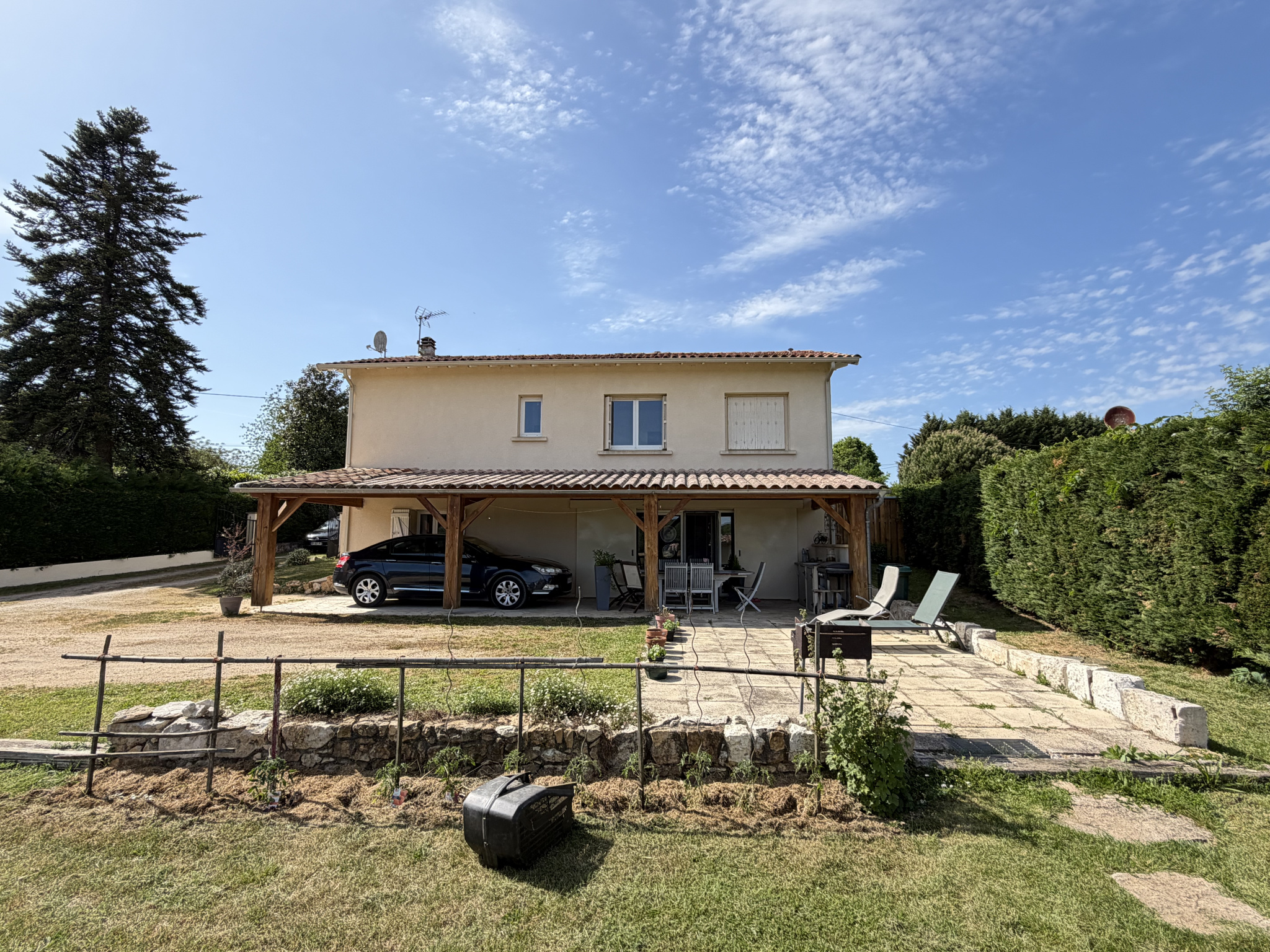 ? Charme et authenticité Maison en pierre avec piscine et dépendances. Derrière son portail, à l'abri des regards, se dévoile une authentique maison en pierre de 1870, pleine de caractère, nichée dans un environnement paisible et verdoyant. Dès l'entrée, le charme opère : volumes généreux, lumière traversante et atmosphère chaleureuse. ? Une maison familiale et conviviale 154 m² habitables Séjour lumineux de 37 m², idéal pour recevoir 4 chambres pour accueillir famille et amis 2 salles d'eau et 2 WC indépendants Maison sur 2 niveaux, fonctionnelle et agréable à vivre ? Un extérieur rare et plein de charme Le véritable atout de cette propriété se trouve à l'extérieur : Terrain arboré de 1 085 m² Jardin d'environ 1 000 m² Piscine 11x5 avec pool house Terrasse de 35 m², parfaite pour les beaux jours Cuisine d'été pour prolonger les soirées Pigeonnier, témoin du charme d'antan Puits, pratique et authentique Dépendances : atelier, rangements Un lieu pensé pour profiter, recevoir et se ressourcer. ? Confort moderne Chauffage bois + gaz Climatisation Double vitrage Cuisine équipée Fibre optique Cheminée ? Ce qui fait la différence Une propriété qui allie authenticité, confort et qualité de vie, avec des extérieurs complets et exploitables toute l'année. ? Un bien rare, idéal pour une résidence principale de caractère ou une maison de famille.