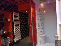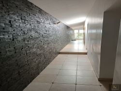 Elle se compose pour la partie jour au Rez de Chaussée : une entrée, une cuisine aménagée et équipée de 38 m2, un WC indépendant, une chaufferie, un grand couloir vous conduit au jardin et distribue une salle d'eau moderne entièrement faïencé, une pièce bureau/chambre, et un magnifique salon avec pierre apparente et poêle à granules.