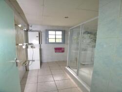 En rez de jardin: sous sol total de 72 m² avec garage, buanderie, grande pièce carrelée pouvant faire office de 5 ème chambre d'amis ou de bureau.
