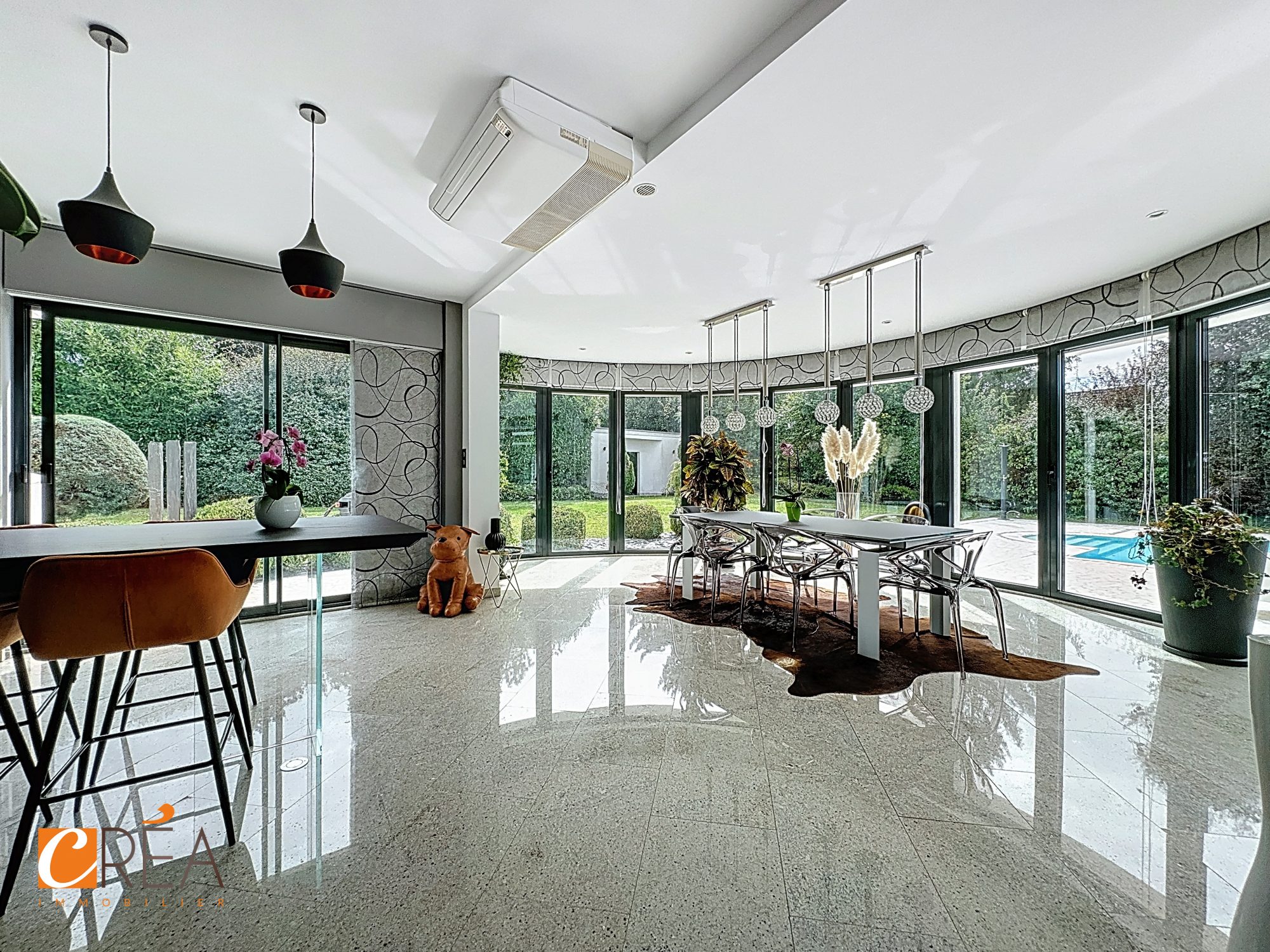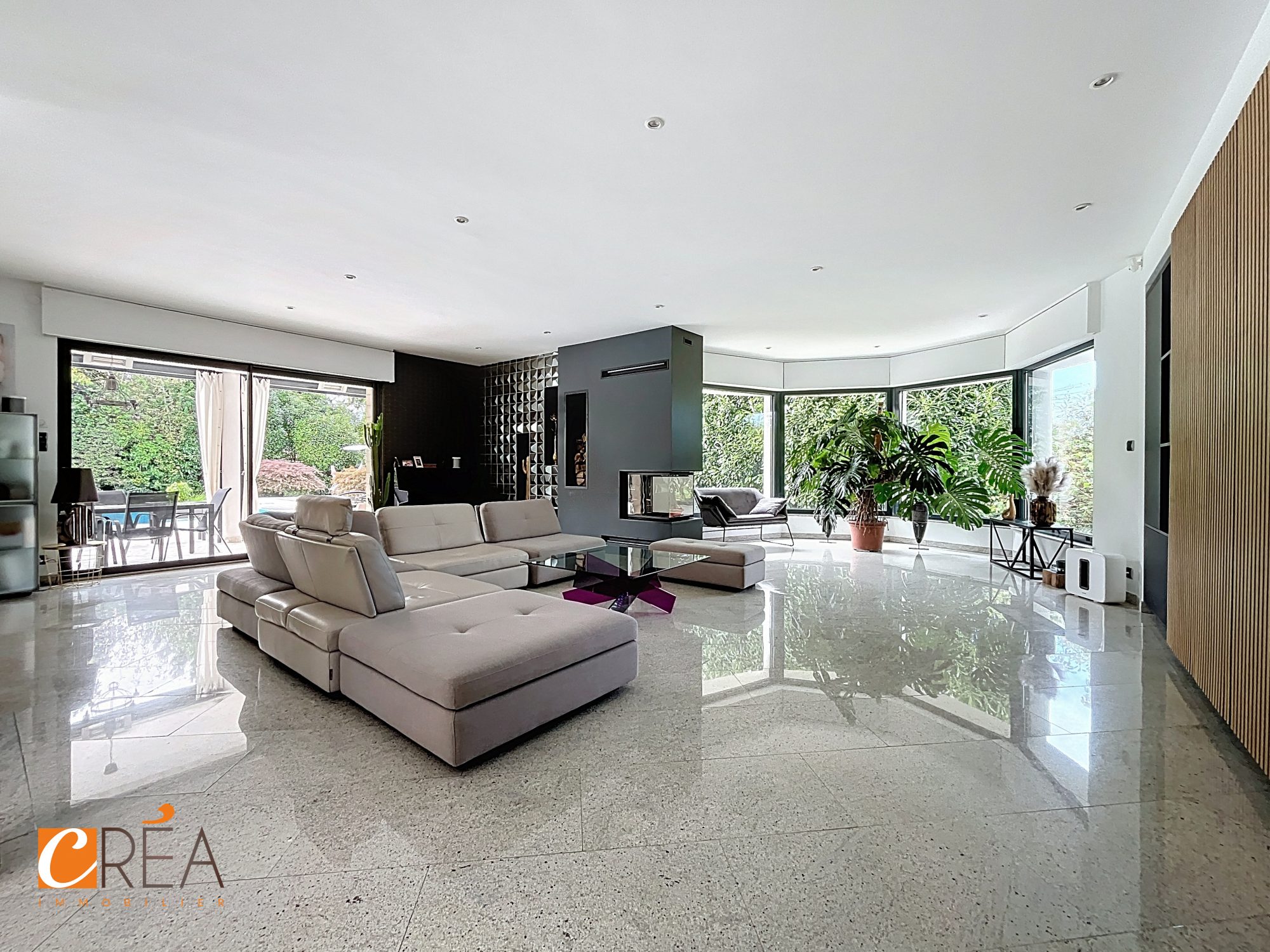 La pièce de vie majestueuse de 91 m², très lumineuse, offre de beaux volumes pour recevoir.
