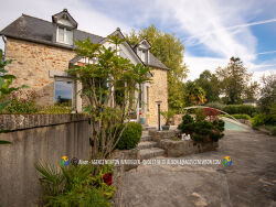 MANCHE, près de Pontorson, maison en pierres 7 pièces, 4 chambres, piscine couverte, jardin, garages