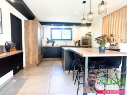 En Rez-de-chaussée, vous disposerez d'une grande pièce à vivre avec sa cuisine toute équipée haut de gamme pour une surface totale de 73 m², d'une belle suite parentale de 18 m² ainsi que d'un WC.