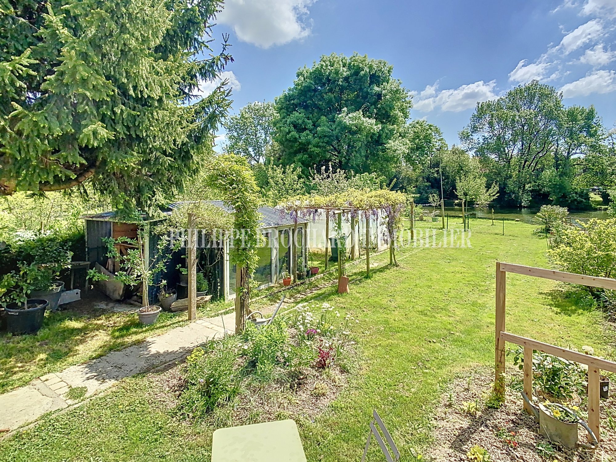 Pièce de vie avec insert bois pour des ambiances cocooning. Une cuisine aménagée et équipée lumineuse, un salon sur l'arrière de la maison avec une vue sur le jardin. Un grand garage avec porte sectionnelle.