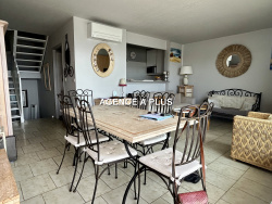 PORT CAMARGUE - SECTEUR MARINA 2 Belle MARINA en étage de type 4 pièces en triplex. Au Rez-de-chaussée privatif vous accédez à votre box puis une entrée avec un cellier. Au premier étage : Un large séjour climatisé avec cuisine équipée semi ouverte et une terrasse de 15 m2 exposée SUD-OUEST avec superbe vue sur le quai et la mer au loin. Semi étage (quelques marches) : 2 chambres climatisées avec balcon communiquant mesurant 5.40 m2, un WC, une salle de bains. Semi étage suivant : Très grande suite parentale (cette pièce est selon la loi carrez non comprise dans la surface de marina car autrefois sa destination était une véranda, la loi carrez est donc toujours de 72.89m2) Cette pièce récemment emménagée comprend une salle d'eau et WC. Enfin : Une dernière terrasse attenante à cette pièce de 13 m2 exposée SUD-OUEST avec superbe vue. Appontement avec coffre à voile : 4m x 12 m (l'accès se fait en sortant de la marina) Vendu meublé selon inventaire Taxe foncière : 1310EUR Taxe de quai : 537EUR