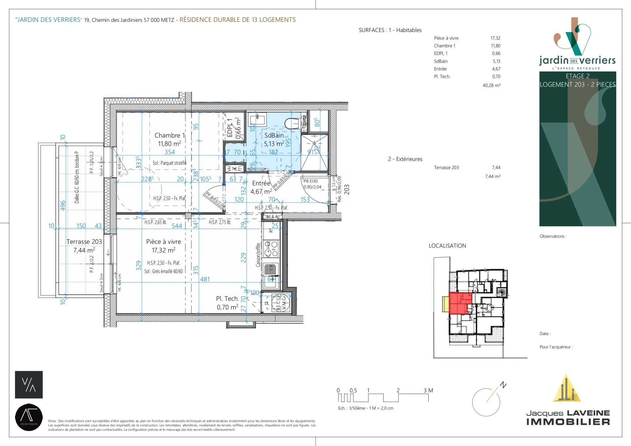 OPPORTUNITÉ JLI! Marly-Frescaty limite MONTIGNY-LES-METZ au calme à proximité de toutes commodités, de la future ligne C du METTIS, dans une résidence de standing composée de 3 villas de 27 logements, venez découvrir en agence les plans de ce futur appartement F2 en rez-de-jardin de 50.44m2 offrant une belle pièce de vie de 27m2 ouverte sur terrasse et jardin privatif, une chambre, une salle d'eau, un wc. Prestations soignées, prix hors stationnement (possibilité d'achat d'un garage fermé pour 18 000EUR), Frais de notaire réduits. A découvrir 03 87 57 50 50