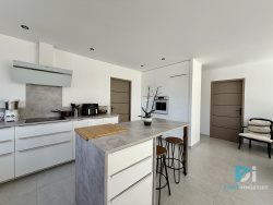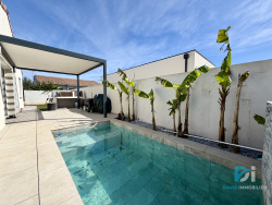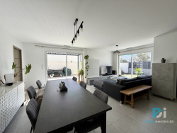 L'Agence David Immobilier vous propose sur Marseillan, une maison de construction 2023, de plain-pied, avec garage et piscine. Elle se compose ainsi: Vous trouverez une grande pièce de vie de 51m2 très lumineuse de part ses nombreuses ouvertures. Une cuisine équipée, moderne et fonctionnelle avec ilot central, ouverte sur le séjour ainsi qu'un accés au garage. Du coté nuit, vous trouverez 3 chambres, une salle d'eau ainsi qu'un wc indépendant. Cette jolie maison, édifiée sur une parcelle de 290m2 de parcelle offre de nombreuses prestations de qualité, climatisation gainable avec système Airzone, menuiseries alu double vitrage, centralisation des volets roulants... Également, la maison dispose de deux placces de stationnements devant la maison. A l'extérieur, un superbe jardin effet tropical, une terrasse couverte et un barbecue en dur, une piscine, offrant de belles perspectives pour les journées ensoleillées de la région.