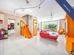 Une fois passé le sas d'entrée, un grand salon lumineux s'ouvre sur la terrasse et le jardin grâce à de larges baies vitrées à galandage. La cuisine, entièrement équipée et semi-ouverte, complète cet espace de vie convivial de plus de 70m2. Sur ce même plateau, une chambre avec salle d'eau donne également sur le jardin. Des placards intégrés, buanderie et des toilettes indépendantes apportent un confort pratique.