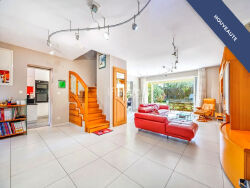 Une fois passé le sas d'entrée, un grand salon lumineux s'ouvre sur la terrasse et le jardin grâce à de larges baies vitrées à galandage. La cuisine, entièrement équipée et semi-ouverte, complète cet espace de vie convivial de plus de 70m2. Sur ce même plateau, une chambre avec salle d'eau donne également sur le jardin. Des placards intégrés, buanderie et des toilettes indépendantes apportent un confort pratique.