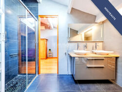 L'étage encore supérieur est entièrement dédié à suite parentale. Cet espace occupe tout le plateau et offre de beaux volumes. Il comprend un bureau particulièrement spacieux (qui pourrait facilement être transformé en chambre supplémentaire, en salle de jeux/cinéma, ...), ainsi qu'une salle de bain, des toilettes et un véritable dressing. La suite s'ouvre sur une terrasse offrant une vue dégagée. Les prestations sont soignées et de qualité. La climatisation réversible équipe l'ensemble de la maison et assure un confort optimal toute l'année.