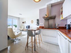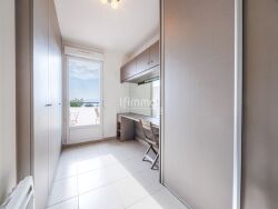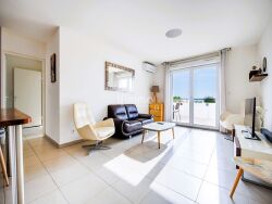 L'appartement prend place dans une résidence récente avec ascenseur. L'entrée se prolonge vers un salon lumineux avec une cuisine entièrement équipée, ne nécessitant aucun travaux. Le salon s'ouvre, par de larges baies vitrées, sur une large terrasse exposée plein sud, offrant une vue panoramique sur Marseille, sa baie et un agréable aperçu mer.
