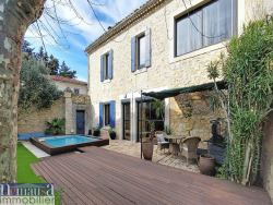 Magnifique Mas de 181 m2 habitable avec piscine, au coeur de Jonquières-Saint-Vincent Situé en plein centre-ville , à l'abri des regards et sans aucun vis-à-vis , ce magnifique mas en pierre d'environ 181 m2 habitables séduira les amoureux du charme provençal et du confort moderne. Vous découvrirez un vaste séjour lumineux donnant sur une terrasse ensoleillée et une piscine au calme , idéale pour se détendre en toute intimité. La grande cuisine indépendante offre un bel espace convivial, parfait pour recevoir famille et amis. L'espace nuit comprend quatre chambres spacieuses , une salle de bains , une salle d'eau , ainsi que de nombreux rangements. Aucun travaux à prévoir : le bien a été soigneusement entretenu et bénéficie de belles prestations. Possibilité d'aménager deux places de stationnement . Idéalement situé entre Avignon, Nîmes et Beaucaire , à proximité immédiate de la gare TGV de Manduel , ce mas allie authenticité, tranquillité et accessibilité. Les atouts : charme de la pierre, volumes généreux, sans vis-à-vis, emplacement recherché, piscine, parfait état. Une véritable pépite à découvrir sans tarder ! Pour toutes informations complémentaires, ou pour organiser une visite, contactez Olivier DA COSTA au 0611075084, olivier@nemausaimmobilier.com immatriculé au Rsac de Nîmes sous le numéro : 821 172 889. Honoraires à charge acquereur Montant estimé des dépenses annuelles d'énergie pour un usage standard: entre 1 450 EUR et 1 990 EUR par an. Prix moyens des énergies indexés sur l'année 2021 (abonnements compris). Nemausa Immobilier, votre partenaire de confiance pour toutes vos transactions immobilières sur Nîmes et ses environs.3 agences spécialisées sur Nîmes et sa région, Transactions, Locations, Gestion Locative, maisons, appartements, terrains, locaux commerciaux & fonds de commerce. Siret 819500380, CPI 30022016000006029, enregistrée au RCS de Nîmes. Les informations sur les risques auxquels ce bien est exposé sont disponibles sur le site Géorisques :www.georisques.gouv.fr