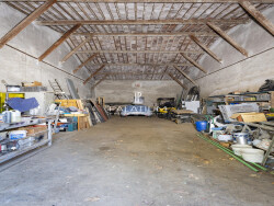 Les dépendances ajoutent un véritable potentiel avec un garage de 43 m² et une grange de 100 m² au sol, dotée d'une hauteur sous plafond de plus de 7 mètres avec sa magnifique charpente.