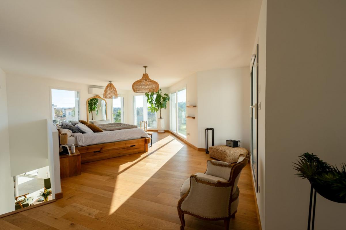 À l'étage, trois grandes chambres de 13 à 18m², dont une suite parentale avec salle d'eau privative.
