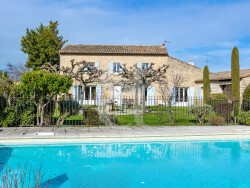 En campagne de L'Isle-sur-la-Sorgue, au coeur d'un environnement naturel préservé et au calme, ce mas du XIXe siècle en pierre apparente, entièrement rénové, séduit par la qualité de ses prestations, l'élégance de son cadre et la rareté de ses installations équestres.