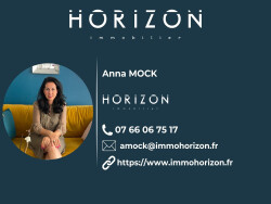 Votre conseiller Horizon Immobilier : Anna MOCK Agent commercial (Entreprise individuelle). Horizon Immobilier Nicolas MOCK, 0631538456 - Informations Loi Alur : Statut salarié Mael MINOT, 0660383772 - Responsabilité Civile Professionnelle n° AIG EUROPE: RD01377004G Informations Loi Alur : Statut négociateur RSAC: 893 487 397 immatriculé à VILLEFRANCHE-SUR- SAONE SIRET: 893 487 397 00018 Les informations sur les risques auxquels le bien est exposé sont disponibles sur le site géorisques : www.georisques.gouv.fr Horizon Immobilier, 180 Rue du Centre, 01140 ST. DIDIER SUR CHALARONNE RCS Bourg en Bresse 888 579 596 - Carte Professionnelle Transaction n° CPI01012020000045054 CCI de Bourg en Bresse Code APE 6831Z-Non détention de fonds - TVA : FR29888579596 - Assurance RCP : QBE Europe SA/NV 2020IM00317 - RCS de Nanterre 842 689 556