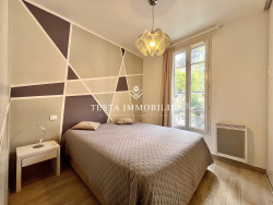 Menton, proche carnoles, au 1er et dernier étage d'une petite copropriété de charme de 4 lots entièrement rénovée en 2016, appartement de 4/5 pièces, récent, tout confort, composé d'une entrée, séjour et cuisine américaine de qualité entièrement équipée, chambre 1, dégagement, chambre 2, chambre parentale avec salle d'eau, wc indépendant, salle de bain avec wc, terrasse de plus de 25 m2 exposée sud-ouest et vue dégagée, véranda de 18 m2. Appartement climatisé, décoré avec goût, isolation performante. Un parking privé complète ce bien de qualité.