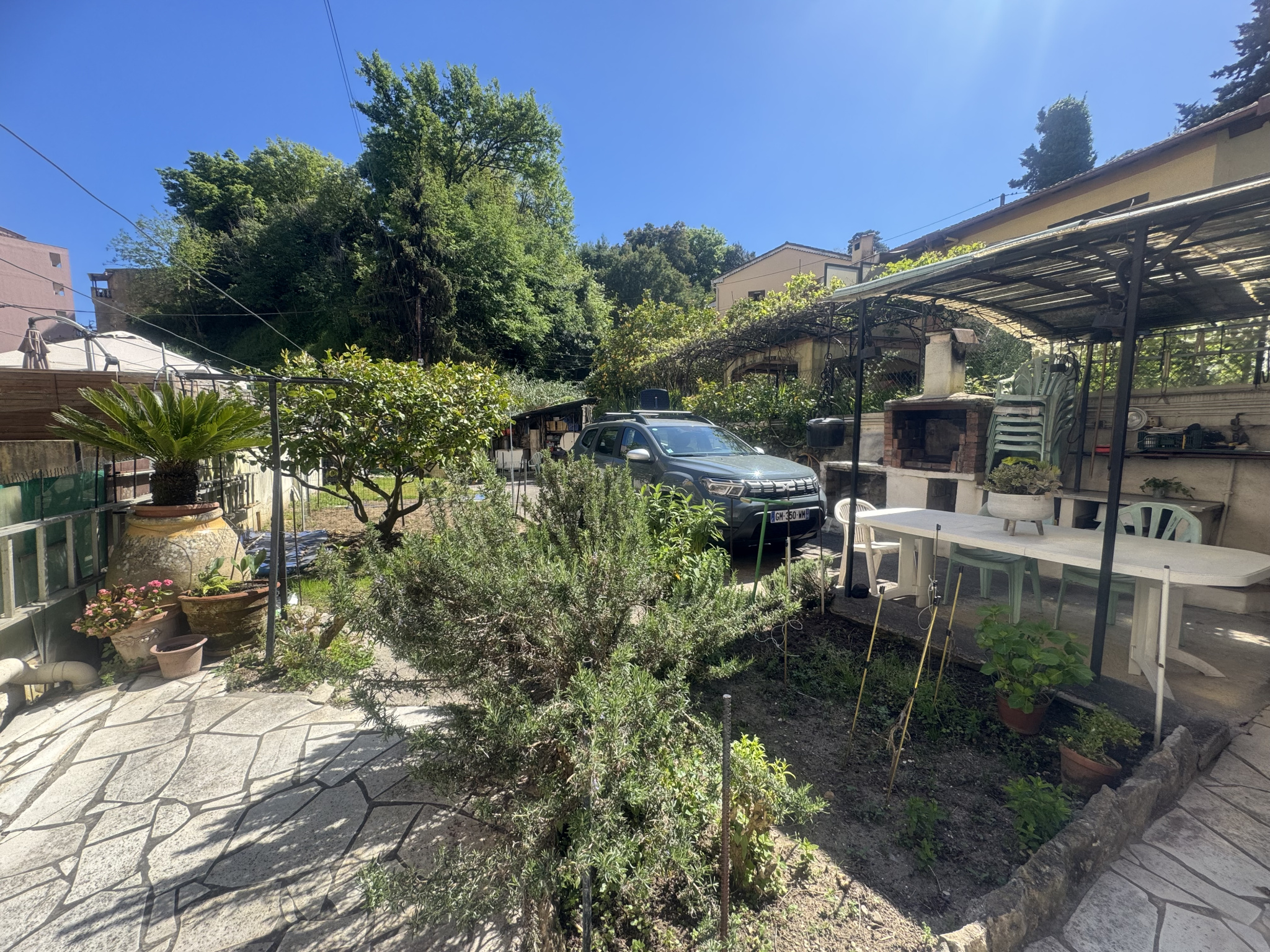 Menton Castellar ,Maison d 'architecte, bergerie en pierre et maison bois, édifiées sur 2785 m2 de terrain . Mots clefs afin de synthétiser ce produit rarissime sur le bassin Mentonnais: vue mer panoramique et baie Mentonnaise . bassin provençal. Au total 5 chambres, 1 salle à manger, cuisine équipée,1 salon, 4 wc, 2 salles de bains, 1 salle de douche, cave, cellier et de nombreuses dépendances. Eau de source, écologie, murs en pierres sèches, vieilles pierres, pins, oliviers, le calme, cheminées ,exposition sud et ouest resument l 'esprit de ce bien. la Maison bois donne sur 65 m2 de terrasse et 10 m2 de terrasse bois suspendue + restanques en pierres sêches Droit d eau de source .Receveur eau de source 6 m2.parkings à l 'arrivée devant la maison.En redescendant au parking , cave sous la terrasse du Niv 1.sommes sous Fosse septique. total maison exprimée en loi carrez: 180m2 et 5,83 scellier, cave sous terrasse 0, 8m2 incidence escaliers non carez.5,477 local technique