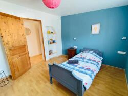 A l'étage, deux belles et grandes chambres dont une de 18,5m² composée de deux pièces, une salle d'eau, un WC séparé.