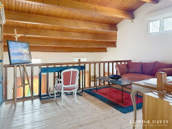 À l'étage vous trouverez une spatieuse mezzanine surplombant le séjour offrant un espace pour un bureau, un salon..., puis une troisième chambre avec une salle de bains et un deuxième wc indépendant pour plus de confort.