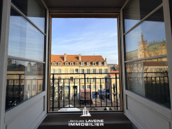 EXCLUSIVITÉ JLI! Place Saint-Jacques, dans immeuble de qualité avec dalles! au quatrième étage et dernier, très agréable appartement en duplex (55m2 sol) comprenant une entrée, un beau séjour avec porte fenêtre, ouvert sur cuisine équipée, à l'étage un dégagement, deux chambres mansardées une salle de bains-wc. Superbe vue dégagée sur les monuments de la vieille ville! Idéal premier achat ou investissement locatif de qualité.