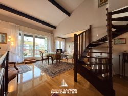 EXCLUSIVITÉ JLI! Metz-Sablon, en impasse au calme, au troisième et dernier étage d'une résidence avec ascenseur, bel appartement en duplex (121m2 sol et 106m2 carrez) en très bon état comprenant une entrée avec placards, un salon-séjour avec cheminée et accès terrasse, une cuisine aménagée, une salle de bains, un wc indépendant, deux chambres, un grand bureau en mezzanine, nombreux rangements, une cave et une place de parking au sous-sol. Chauffage individuel au gaz. Contact Emmanuel GOUX 06 11 39 00 40