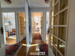EXCLUSIVITÉ JLI! Metz-Sablon, en impasse au calme, au troisième et dernier étage d'une résidence avec ascenseur, bel appartement en duplex (121m2 sol et 106m2 carrez) en très bon état comprenant une entrée avec placards, un salon-séjour avec cheminée et accès terrasse, une cuisine aménagée, une salle de bains, un wc indépendant, deux chambres, un grand bureau en mezzanine, nombreux rangements, une cave et une place de parking au sous-sol. Chauffage individuel au gaz. Contact Emmanuel GOUX 06 11 39 00 40