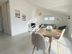 Coup de coeur assuré dès votre arrivée par sa pièce de vie lumineuse et meublée avec modernité. Vous disposerez pour votre plus grand confort d'un canapé convertible en lit, table basse, meuble Tv et Télévision. La cuisine, entièrement aménagée et équipée d'électroménagers (Plaque de cuisson, four, hotte) comprend également son coin repas avec sa table et ses chaises.