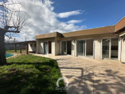 OFFRE ACCEPTEE Dans un quartier recherché et résidentiel, les Grillons 2 à Meyzieu, maison de 141 m2, érigée sur un terrain plat de 617 m2. Au grand calme, sans-vis-à-vis, vue sur la colline du fort de Meyzieu, de plain-pied, orientée sud et Ouest, piscine et garage de 57 m2. Bus, écoles et commerces à proximité. Travaux à prévoir, A voir rapidement. Pour tout renseignement, contacter RHODE L'IMMOBILIER Marielle FOUNTA 06.83.97.11.68.
