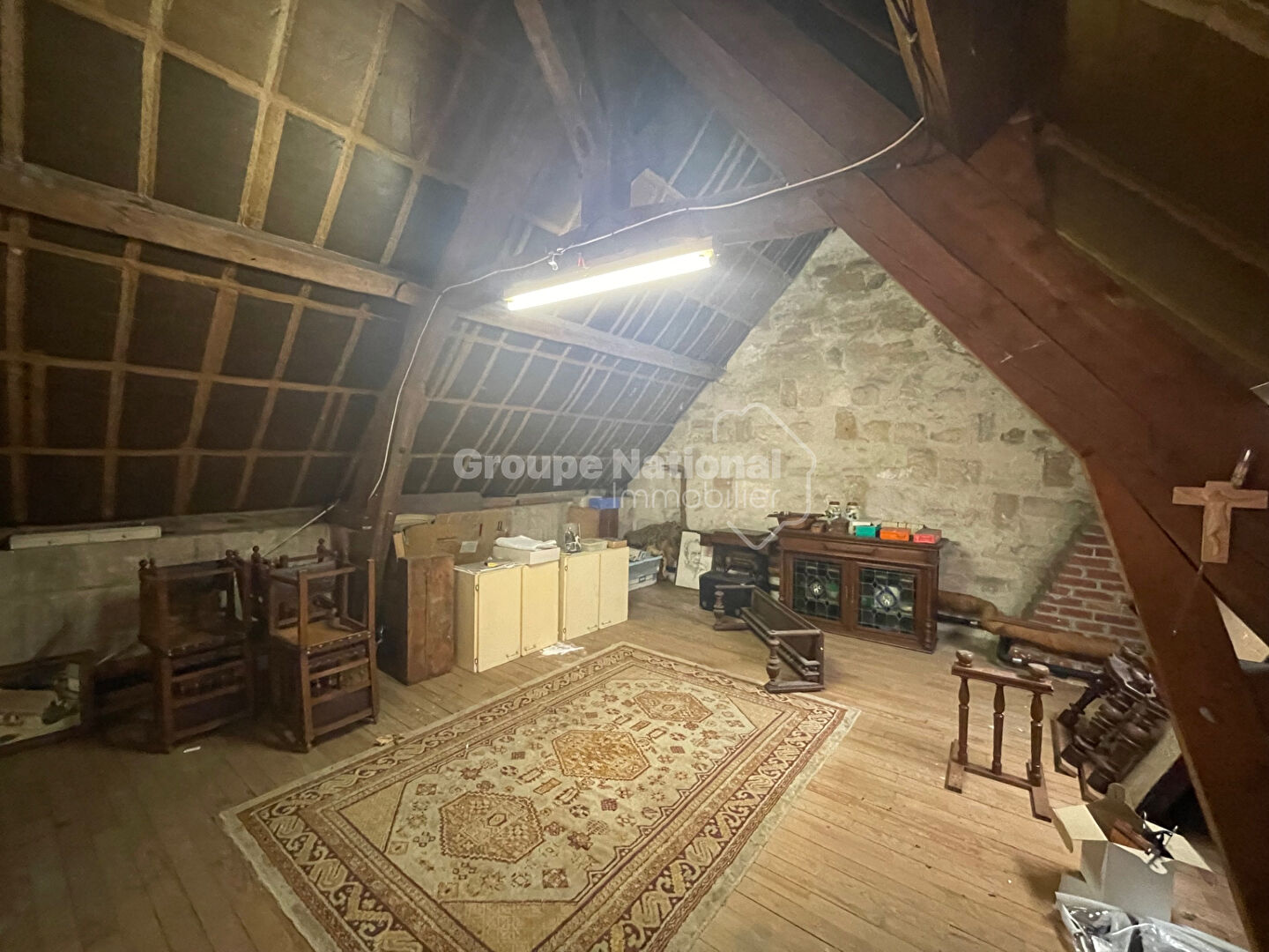 A l'étage : Grand palier détente où salle de jeux, Bureau, Une chambre mansardée d'environ 16,50m² au sol, Deuxième chambre d'environ 9m², Troisième grande pièce où chambre d'environ 19,80m² avec placards aménagés sous pentes, Pièces stockage.