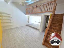 Bien mêlant le charme de l'ancien et du moderne avec un bel espace en mezzanine. Possibilité de créer une chambre en bas afin de garder un espace bureau ou dressing sur la mezzanine.