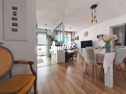 Un agencement fonctionnel et lumineux Situé au premier étage, ce bien se distingue par son agencement optimisé et son excellent état général. La pièce de vie, d'une surface de plus de 34 m², intègre une entrée, une cuisine aménagée et un vaste séjour convivial.