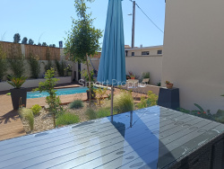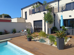 Maison de 2004, T5 de 128 m2 sur deux niveaux traversant, ouest-est, proche du centre-ville. Cette villa mitoyenne s'intègre dans une copropriété de six villas entièrement closes et sécurisées. L'accès à cette habitation s'effectue de plain-pied côté ouest et dessert une grande pièce de vie, cuisine équipée/salon/salle à manger de 38 m2, s'ouvrant sur une grande terrasse aménagée, piscine (4x3) et plage 110 m2. La suite parentale avec salle d'eau, dressing et wc indépendant, un cellier et un garage complètent ce niveau. La partie nuit située à l'étage se compose de 3 chambres avec accès à une terrasse carrelée de 22 m2, d'une salle de bain avec baignoire et douche et d'un wc indépendant. Cette propriété récente est en excellent état, aucun travaux à prévoir. Confort intérieur : chauffage climatisation réversible, carrelages, menuiseries aluminium double vitrage, volets roulants électriques sur toutes les ouvertures, store extérieur, fibre, etc... Confort extérieur : grande terrasse aménagée et végétalisée, deux places de parking privatives 25 m2, copropriété sécurisée, portail électrique, proximité centre-ville, etc... A proximité, tous commerces et services médicaux, écoles primaires,(collèges, centre hospitalier de Montélimar, crèches, bus, etc...) - 15/20 minutes à pied de la gare et du centre ville, bus ligne 31 à une minute dessert gare et centre-ville Le confort d'un appartement et le bien-être d'une maison.