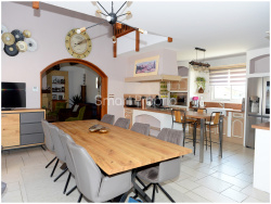 Maison de 2005 édifiée sur une parcelle de 900 m2 entièrement close, exposition sud. T5 de 190 m2 sur vide sanitaire de plain-pied avec niveau supérieur ; une terrasse de 90 m2 avec abri de 20 m2, piscine chauffée avec volet électrique. Jardin aménagé dans le respect de l'environnement, espace de vie agréable et très ensoleillé. Séjour, cuIsine et salon avec cheminée de 90 m2, belle hauteur sous plafond et puits de lumière qui apportent une note architecturale et luminosité à cet espace de vie. Deux chambres, une salle de bain et wc indépendant complètent ce niveau. L'étage comprend une chambre de 15 m2, une salle d'eau ainsi qu' une grande mezzanine aménagée en chambre. Cette maison contemporaine en très bon état est parfaitement entretenue ; elle se singularise par le volume de ses espaces, son équipement, sa luminosité, de même que le choix des matériaux et son bon goût. Les informations sur les risques auxquels ce bien est exposé sont disponibles sur le site Géorisques : www.georisques.gouv.fr - Annonce rédigée et publiée par un Agent Mandataire -