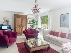 La partie à vivre propose plusieurs espaces de détente : un salon principal, aux dimensions confortables et offrant une belle luminosité, avec un accès direct au jardin et à la piscine, un espace salon TV et un salon de lecture, ou bureau pour les personnes en télétravail.