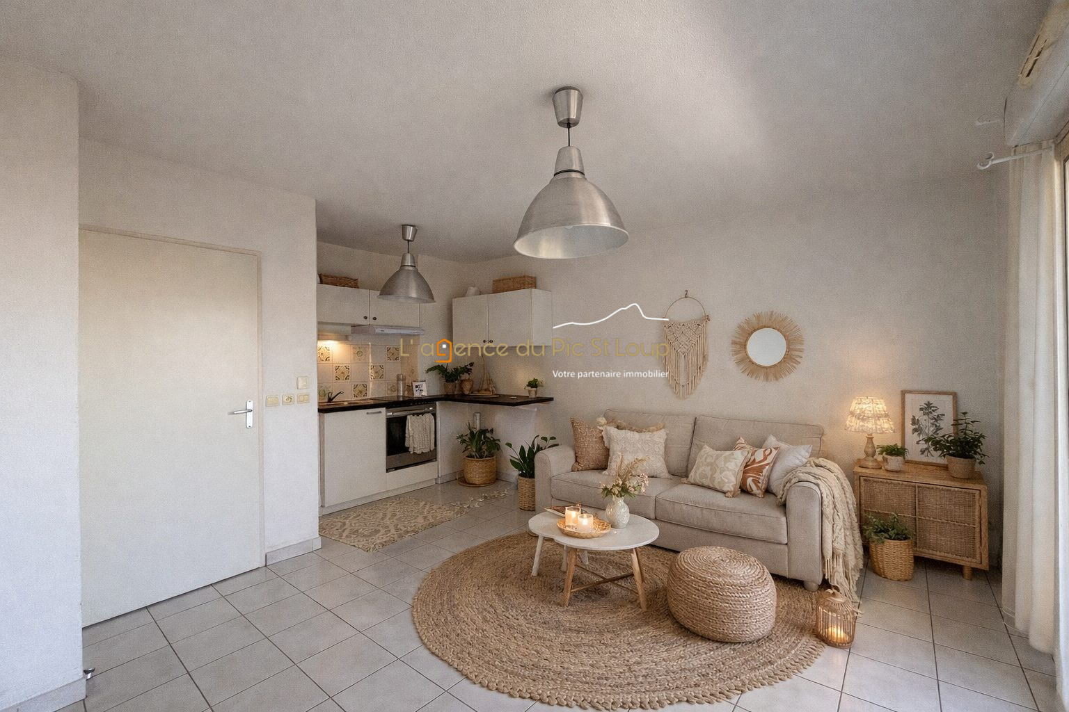 Ce bien offre un bel espace de vie de 23 m² avec une séparation marquée entre l'espace salon et l'espace cuisine/repas. De part et d'autre de cette pièce se trouvent 2 loggias spacieuses, couvertes et protégées du vent ou des intempéries, pouvant avoir des utilisations différentes (coin repas, salon ou encore espace détente...).