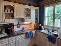 MONTRICHARD MEME ! QUARTIER RESIDENTIEL. Calme absolu pour cette maison sur sous-sol enterré : elle offre donc en plain-pied un séjour-salon avec une cheminée ouverte avec accès à la terrasse côté sud et au jardin arboré, une cuisine indépendante équipée, 2 chambres, une salle d'eau (finitions à prévoir), un wc. Au 1er : grenier exploitable avec une excellente isolation récente. Dans le sous-sol : garage 2 voitures, chaufferie-buanderie, et belle pièce. Chauffage central fuel. Tout à l'égout. Toiture en ardoise naturelle. Prévoir quelques travaux de modernisation.