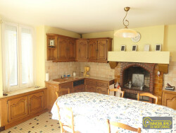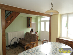 Maison de bourg comprenant Au rdc : entrée, cuisine aménagée avec cheminée, salon avec cheminée, salle d'eau, wc, chaufferie, garage A l'étage : dégagement, 3 chambres Grenier sur la surface Cour et abris Chauffage central fuel - Menuiseries PVC avec volets roulants - Fosse avec micro-station (2023)
