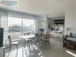 EXCLUSIVITE . Motte du Couchant. Vous serez séduit par ce magnifique appartement de 4 pîèces - 3 chambres - situé au dernier étage d'une résidence de standing, sécurisée, avec ascenseur allant du garage jusqu'à l'accès de l'appartement, parfaitement entretenue et très proche de la plage. La rareté du BIEN est à souligner : 105M2 carrez répartis en une partie jour et une partie nuit . Une terrasse de plus de 78M2 fait le tour de l'appartement , ce qui fait que chaque pièce a un accès direct sur celle-ci et qu'à chaque moment de la journée vous bénéficiez au choix du soleil ou de l'ombre ! L'agencement est idéal : unne belle entrée , un salon séjour très lumineux ouverts sur la cuisine parfaitement équipée totalisant près de 50M2 !! Une arrière cuisine permet de mutiplier les rangements et d'y entreposer les machines tels que congélateur , machine à laver le linge etc.. La partie nuit est composée de 3 grandes chambres avec chacune ses grands placards. L'une de ces 3 chambres est une suite parentale avec salle de bain dotée d'une fenêtre: baignoire, double vasque et wc séparés. Indépendamment de la suite parentale, il a été prévu 2 salles d'eau , et un WC indépendants. L'appartement est extrêmement lumineux, doté de toutes les prestations : volets électriques, bonnes solaires électriques, double vitrage , climatisation dans chaque chaque pièce ... La terrasse est superbe et vous permet de profiter d'une vue dégagée sur la mer . Le garage de 40 M2 est un atout certain et fait bien des envieux... , bien entendu avec l'appartement est aussi vendue la place de parking privative. Voilà un BIEN exceptionnel que j'aurai plaisir à vous faire présenter. Vous souhaitez visiter ? merci de me contacter: Béatrice Dumont : 06.60.90.12.09.