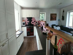 230 m2 d'espace de vie : Rez-de-chaussée Espace de vie spacieux (70 m2) avec cuisine ouverte, salon avec cheminée à bois, poêle à granulés et accès à la terrasse Cuisine d'été / ancienne cuisine 1 pièce, atelier réparti sur 2 niveaux Étage supérieur Galerie 4 pièces, dont une avec un poêle à granulés Salle de bain avec baignoire, toilettes séparées Grenier Grenier convertible